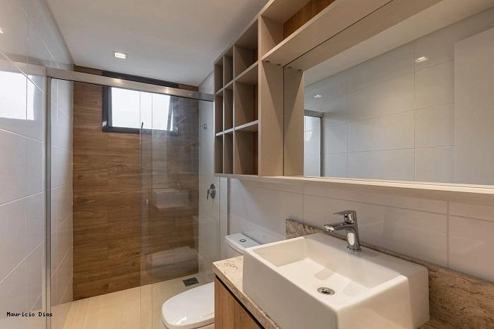 BANHEIROS COM DETALHE EM PORCELANATO NA PAREDE;